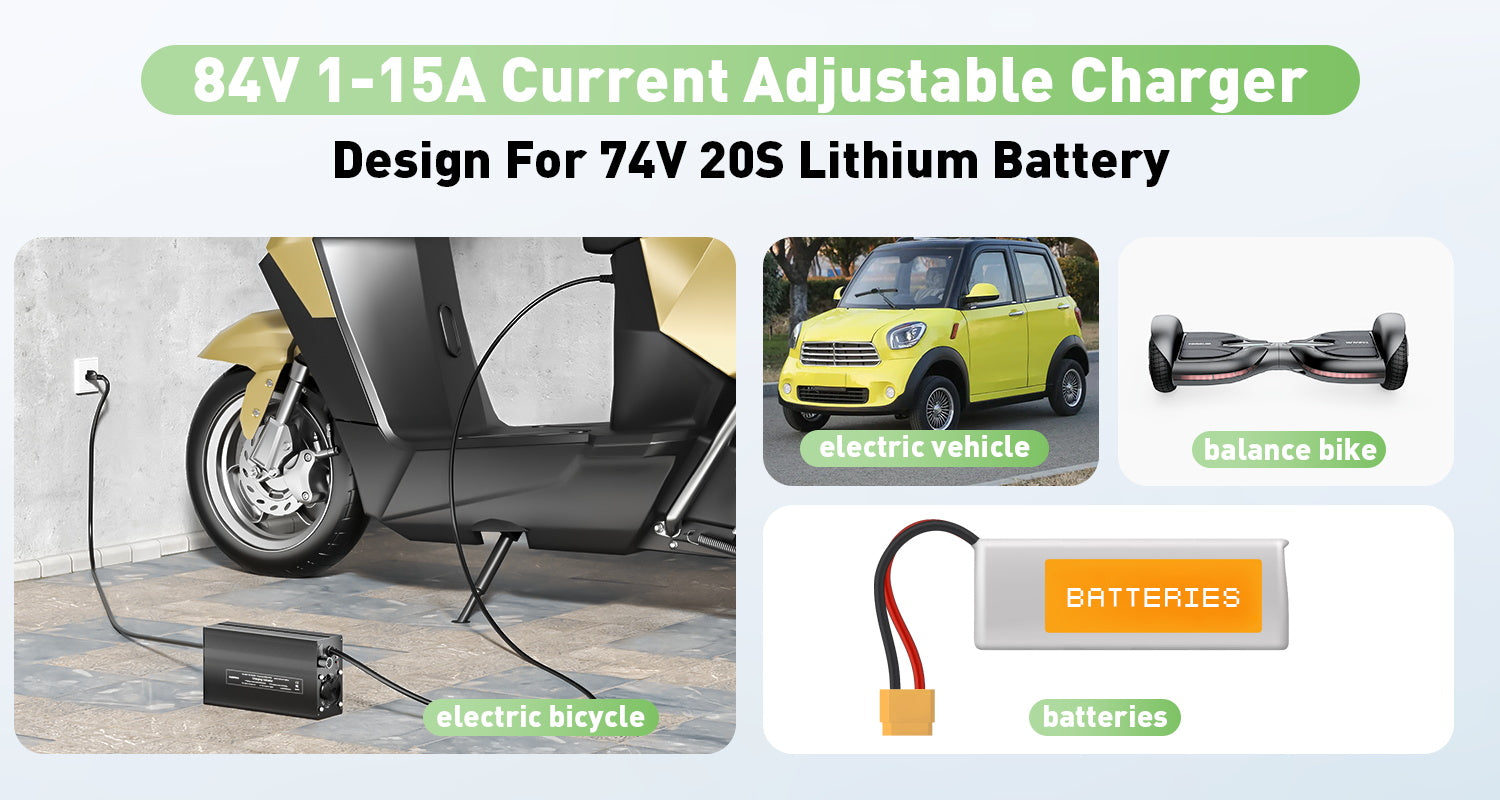 NOEIFEVO 84V 1A-15A Current Adjustable Battery Charger for 74V 20S Lithium Li-ion Lipo Battery, Ebike Scooter Electric Motorcycle Charger