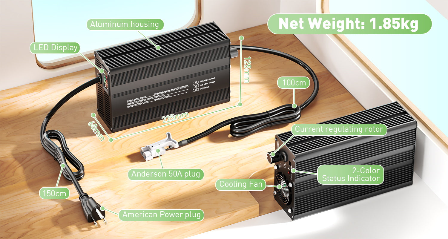 9. High quality aluminum housing with cooling fans, ensures the charger runs smoothly.